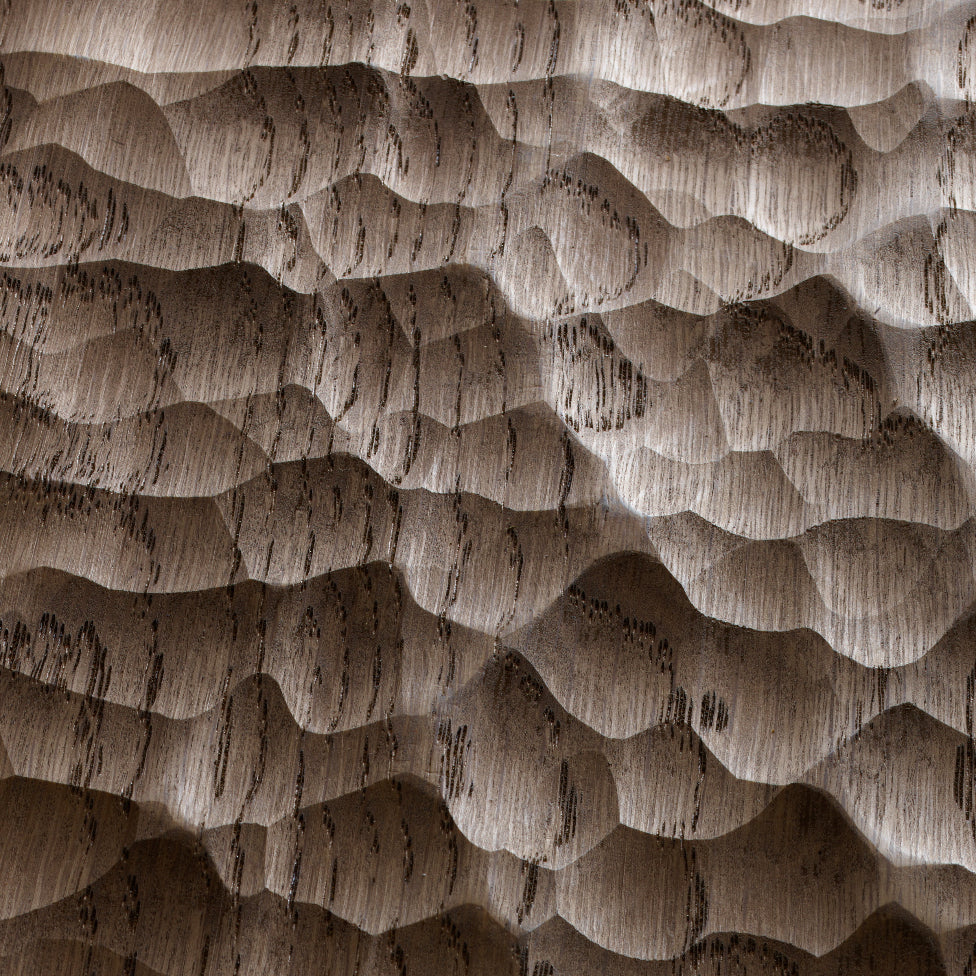 Die Eiche Massivholzpaneelen mit "Ozean"-Optik sind von der Inneneinrichtung japanischer Hotels und Restaurants inspiriert. Gefertigt aus heimischem Eichenholz, sorgt die wellige Oberflächenstruktur für eine einzigartige Optik und eine einzigartige Oberflächenhaptik.